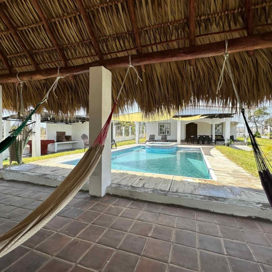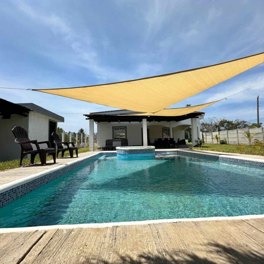 Maria House Monterrico es una casa de playa amplia y cómoda, perfecta para grupos grandes o familias. Ubicada a solo 120 metros del mar, ofrece privacidad, aire acondicionado en la sala, piscina familiar de agua dulce, rancho con hamacas, fogata y espacios interiores y exteriores para convivir y descansar. Cuenta con 4 habitaciones y capacidad para hasta 16 personas. La cocina está completamente equipada y hay parqueo para 5 vehículos. Está en el Km 145, a solo 5 minutos del centro de Monterrico, cerca de Super 24 y tiendas locales.